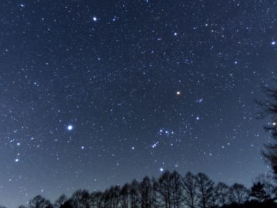 2月も後半になると観察会が終わる時刻には冬の星座たちが大きく西に傾きます