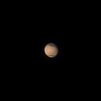 火星もだいぶ遠ざかってきて小さいですが、高度が高く気流の影響を受けにくいのと模様を強調するために赤外フィルターを用いてL画像を撮影しているので予想外に模様が写っています