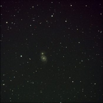 上はフェイスオン銀河の中でも最も渦巻きが見えやすいりょうけん座の子持ち銀河(M51)ですが望遠鏡を見慣れていて「周辺視」を使いこなせる人でないと中心部の明るい部分しか認識できないことが多いです