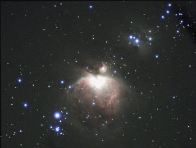 まずは薄明終了後に木陰に入りつつあるオリオン大星雲(M42)(4s×32 128sec)です