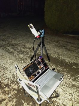 セットを持ち出し、かなり適当に水平出し、鏡筒をだいたい北向き水平に向けて、Synscanでを起ち上げて1スターアライメント、その途中でSharpCapを起ち上げて架台に接続しいきなりプレートソルブ、これでアライメント用天体が中央に来ればSynscanでアライメント完了をすればセッティング完了です