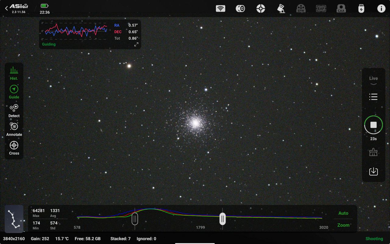 さて冷静に基本から設定や調整を進め、ネットで補足の情報を得ながらASIAIRの細かい設定もしてオートガイドをしました