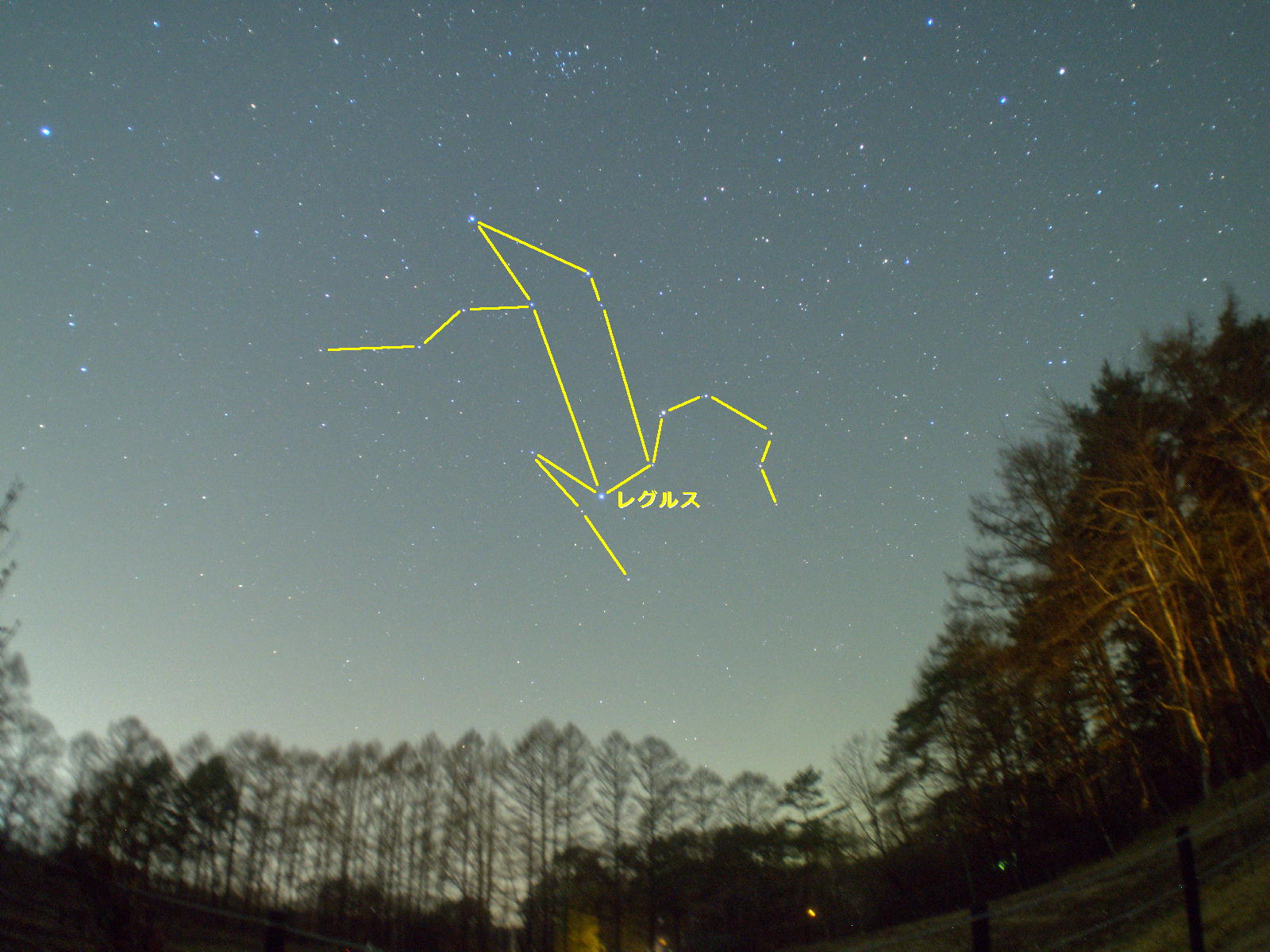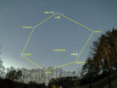 今シーズンは冬のダイヤモンドの中に木星と火星がいて一層にぎやかでしたが、少し遅い時刻になると春の星座であるしし座が西の空に傾きだします