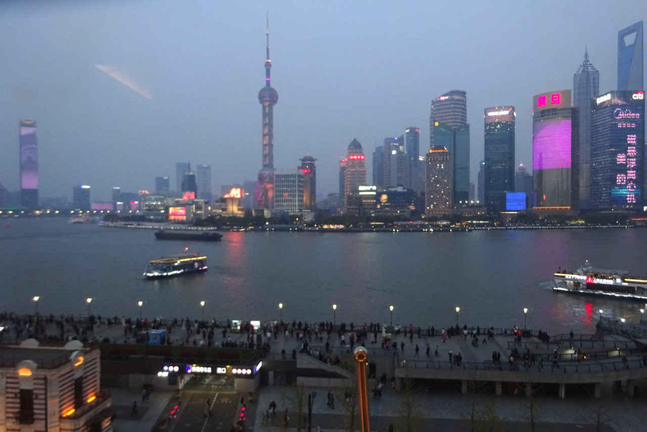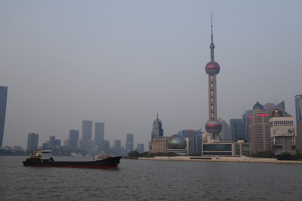 上海の第一印象は、予想以上にきれいで先進的な街ですが、黄砂の影響か景色は少し霞んでいます
