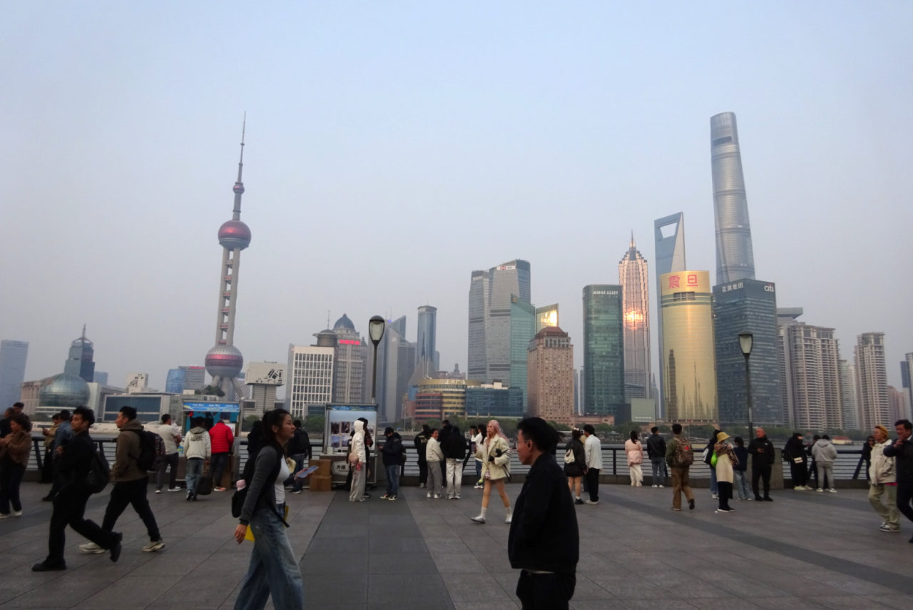 上海といえば外灘(わいたん)川沿いの広い遊歩道にはたくさんの観光客が行き来します