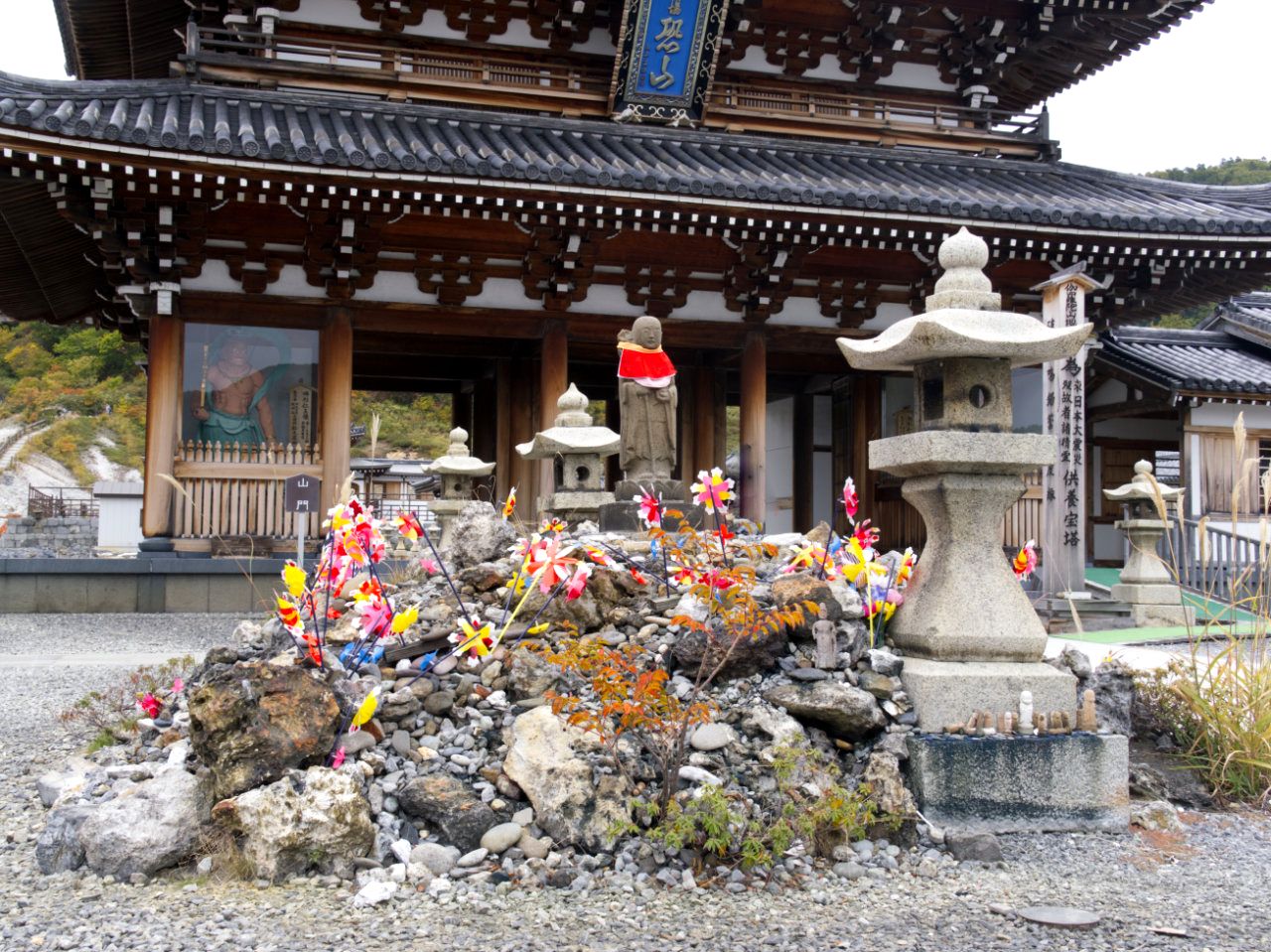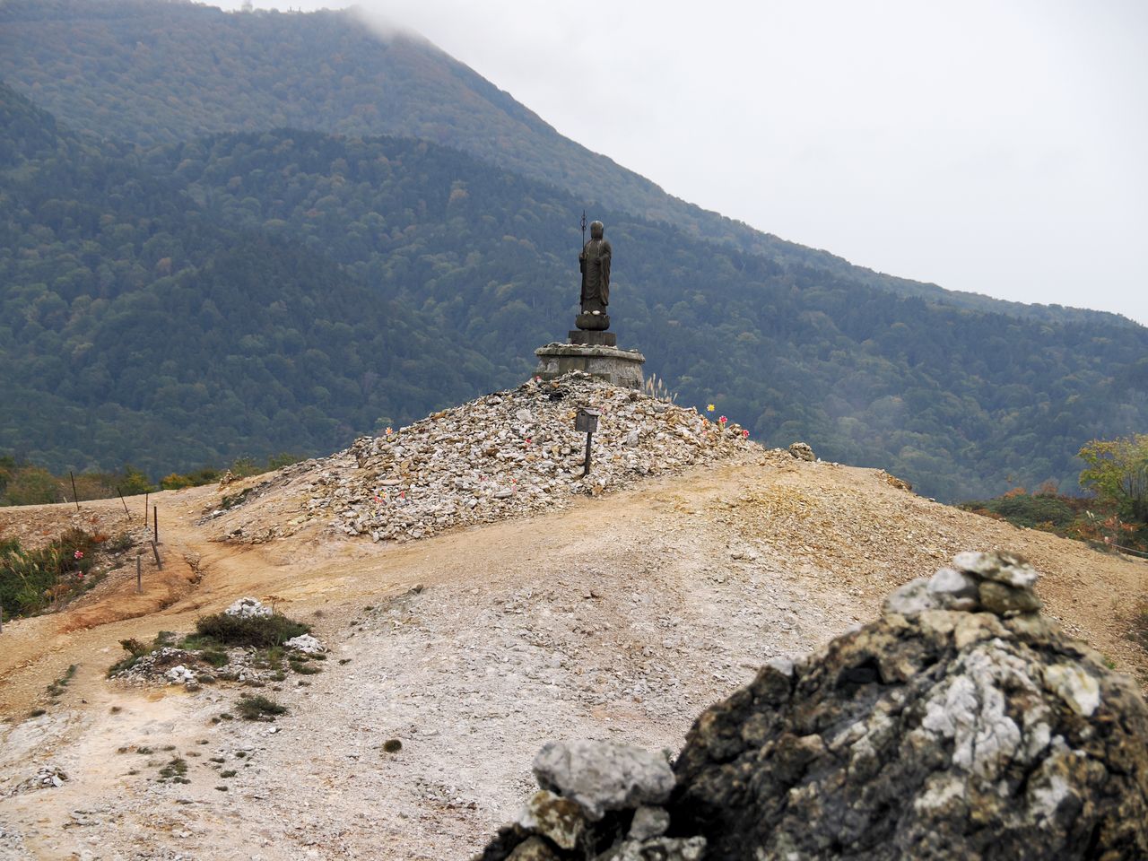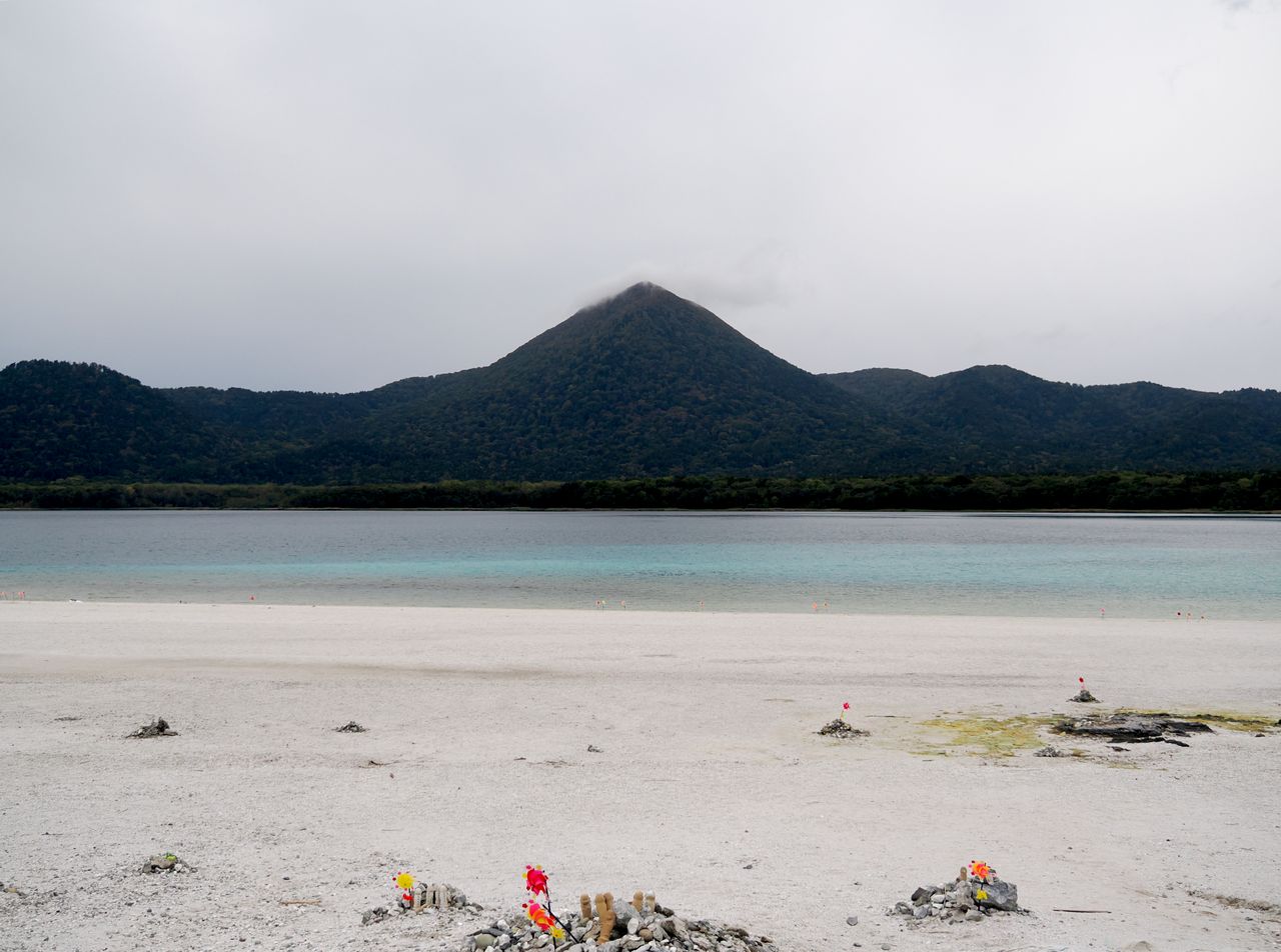 恐山というと死者の言葉を伝えるイタコが有名ですが、地獄を思わせるような硫黄の噴気孔が広がる荒涼とした岩場と、あちこちに積み上げられた石塚が三途の川のほとりのような景観です