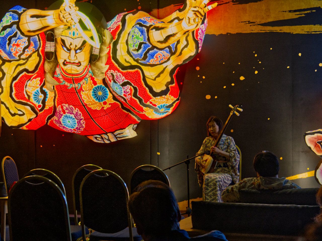 こちらのホテル、ねぶたメインの内装が売りで、じょんがら三味線の生演奏も楽しめました