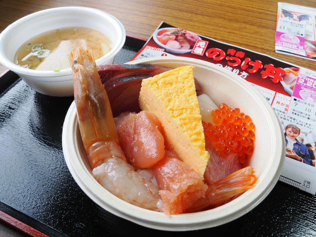 鮮魚市場を歩きながらいろいろなお店で自分の好きな刺身をどんぶりに乗せてゆき、自分の好きな海鮮丼を作るシステムです