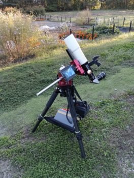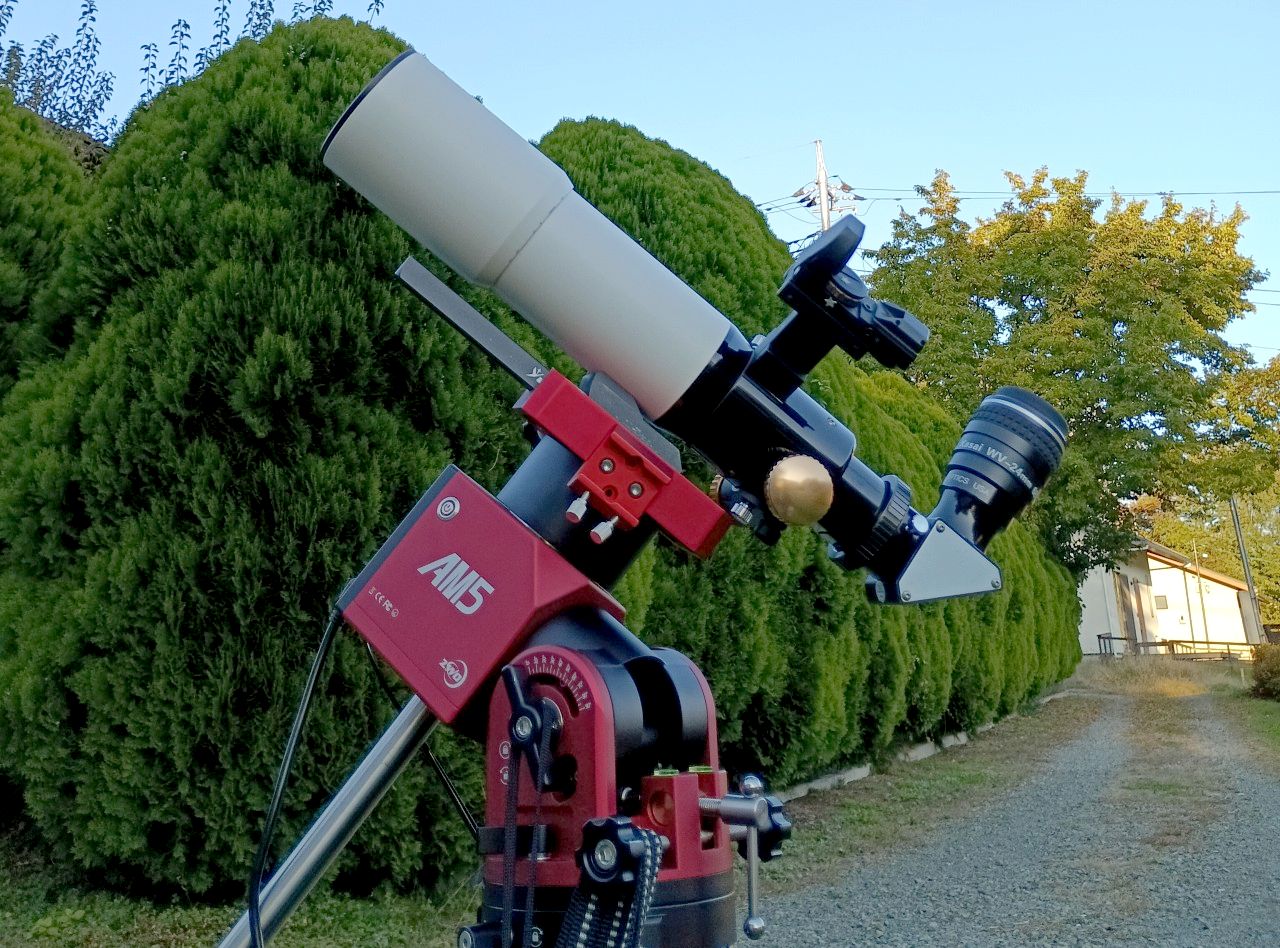 ・天頂ミラーを介して24mm見かけ視界65°の接眼レンズを組合わせ約17倍、実視界3.8°・これを導入精度の高いAM5赤道儀に載せています