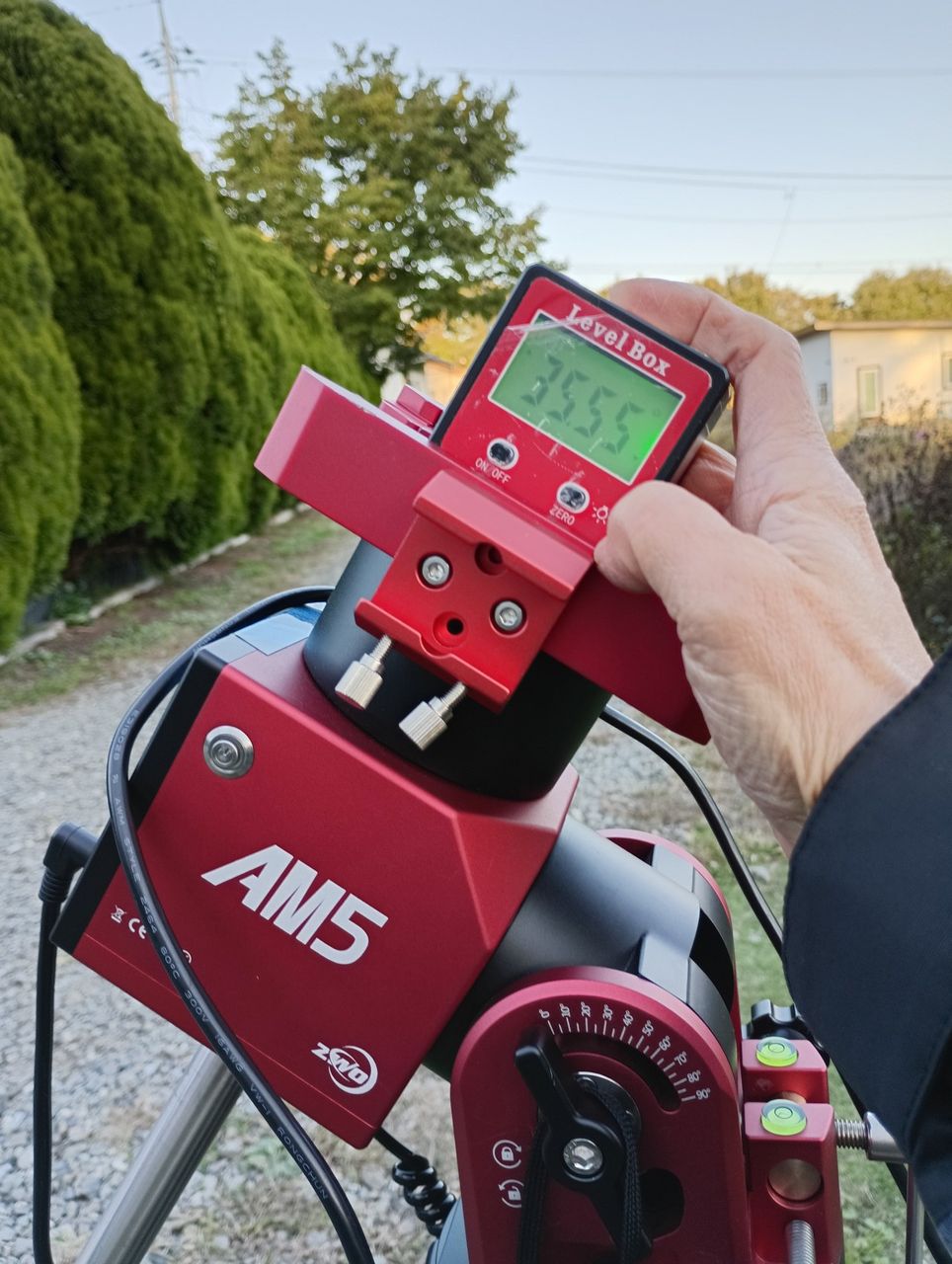 次に傾斜計で観測地の緯度と同じ角度になるように極軸を調整します(スマホアプリを使用しても良いです)