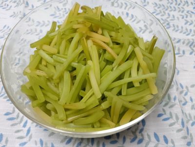 このままでもシャキシャキして結構いけますが、おかかと醤油を少し垂らしておひたしとして、少し炒めてキンピラにしても美味しいです