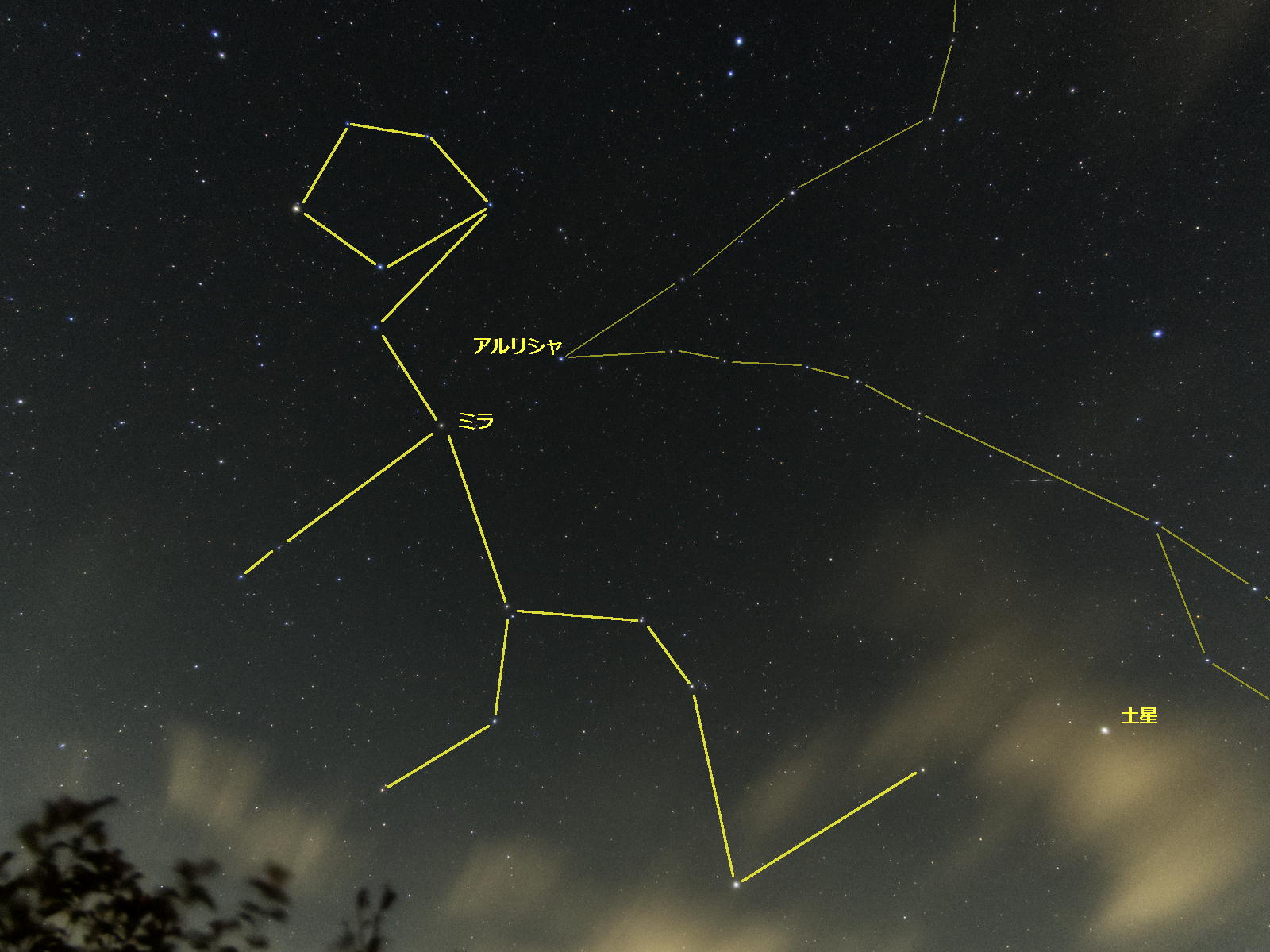 この写真ではくじら座わかりにくいので星座線を入れて見ます