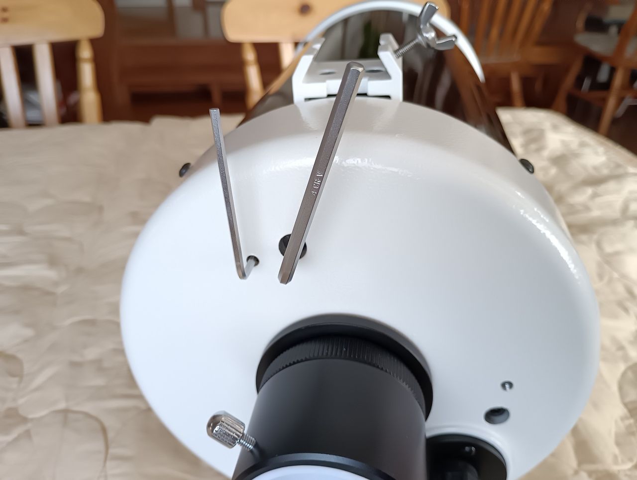 BKMAK150は鏡筒の接眼側に光軸調整用の穴があています