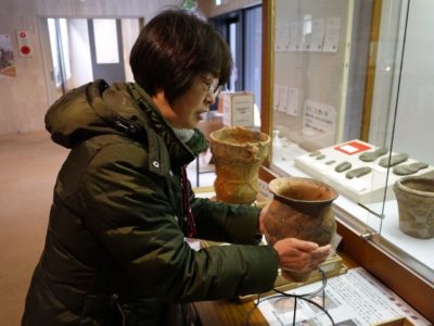 実際に本物の出土、復元された土器に触ることもできます