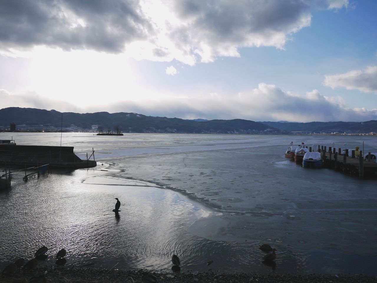 ことしは数年ぶりに諏訪湖が全面氷結して御神渡が見られるかも知れないとの噂もあり訪れましたが、全面氷結にはまだ少し寒さが足りないようでした