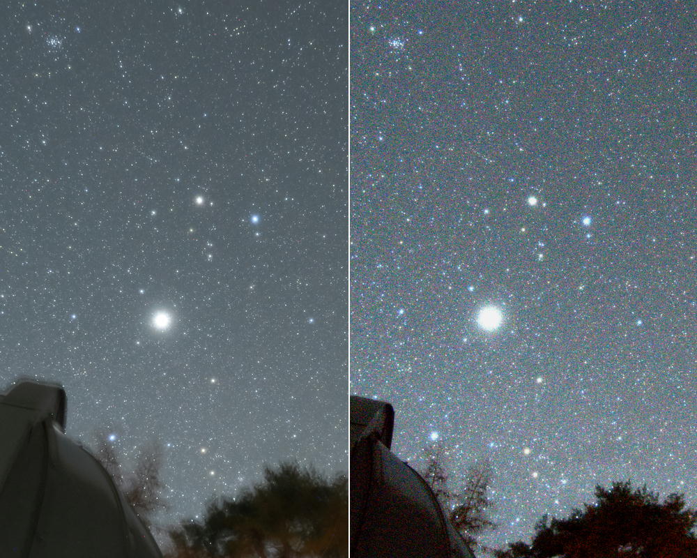 ノイズの違いがよくわかると思いますし、ダイナミックレンジの違いで明るい木星の写り方や恒星の色の表現が全く違います