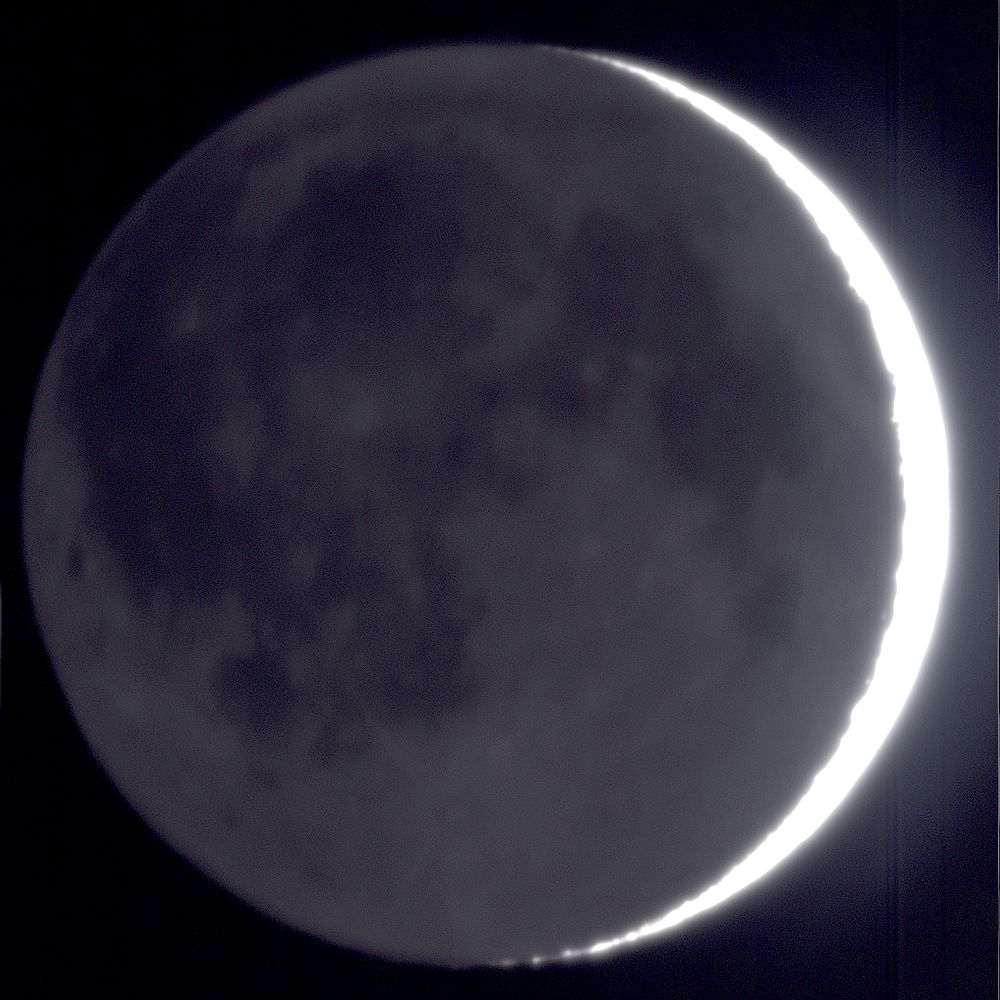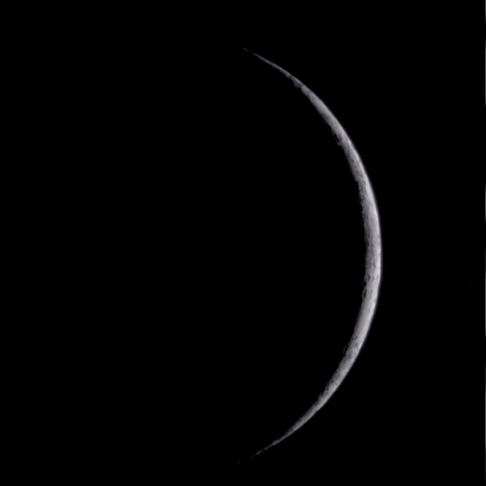 低空で気流が悪く、寝ぼけた画になっていますが、月齢2.0前の細い月を撮ったのも久しぶりです