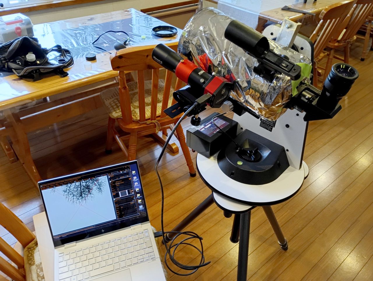 さらにZWO30F5のCMOSカメラを昨日紹介したバローレンズを介した天頂プリズムと接眼レンズを用いることにより低倍率の不得意なC5を補う低倍率用望遠鏡兼ファインダーとして運用することができます