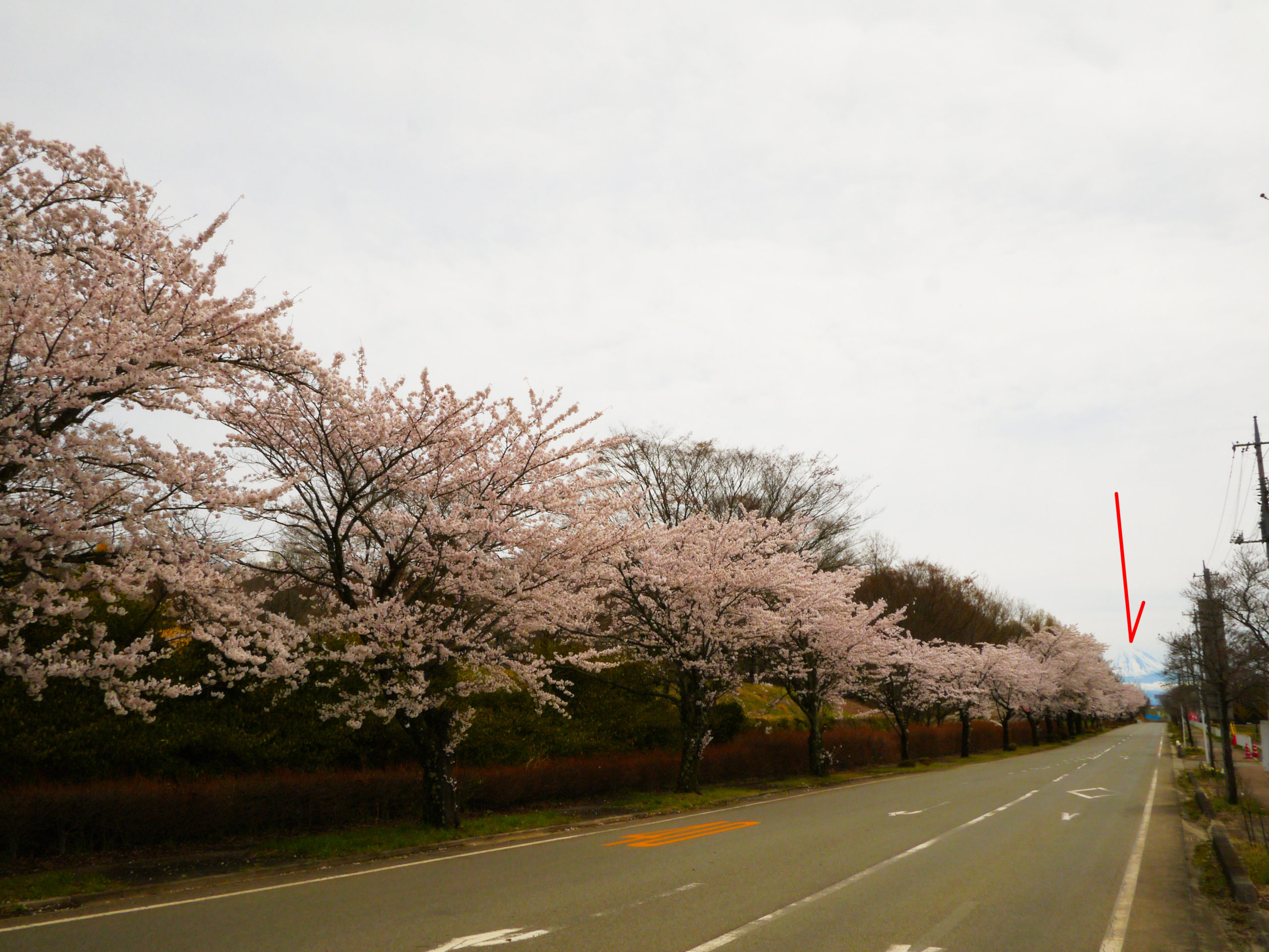 ここの並木道は東西に走る形で、東の正面に富士山(上の写真)、西の正面に八ヶ岳が見えます(下の写真)