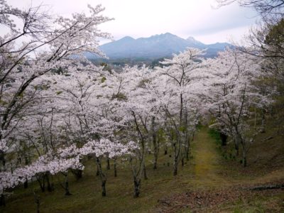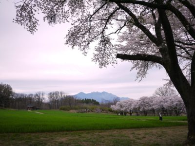 こちらも小高い城山の上から桜の向こうに八ヶ岳・富士山が眺められる場所です