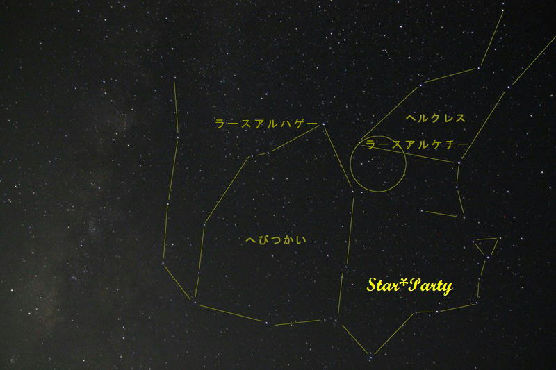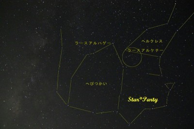 へびつかい座の頭の星「ラースアルハゲー」(蛇を持つものの頭)とヘルクレス