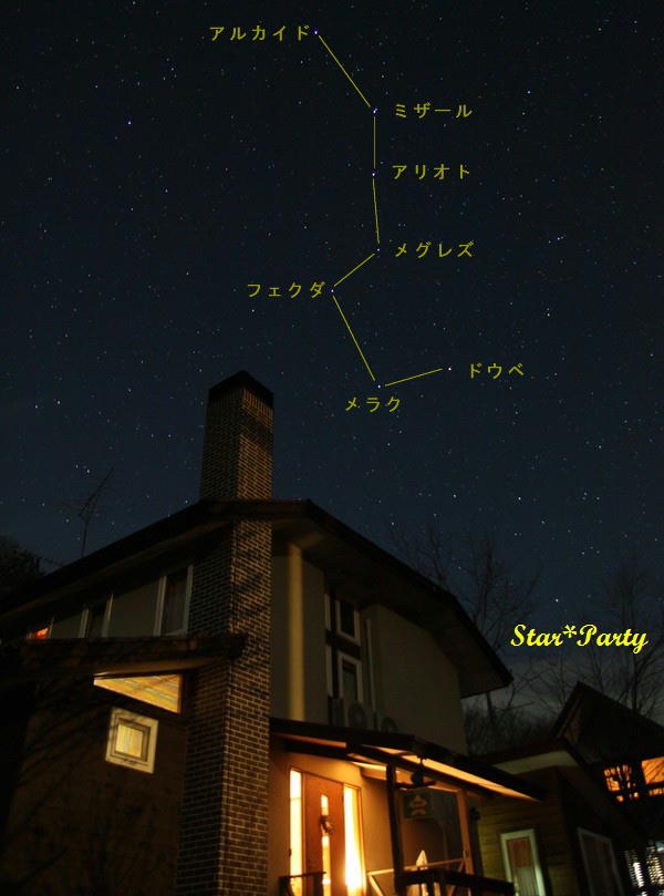 7個の星のうちなぜかドウベだけがやや黄色い星で、それ以外はほとんど