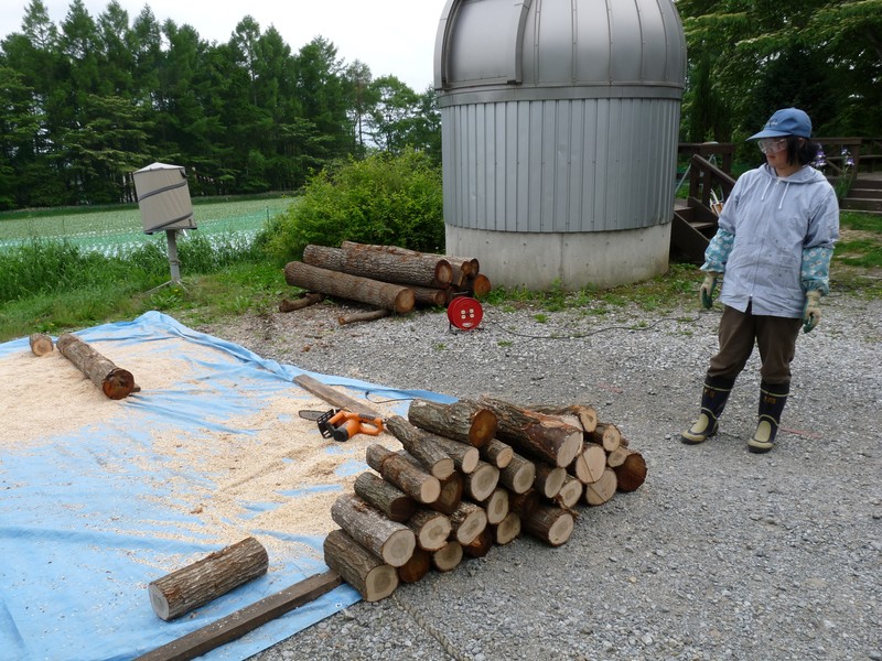 が~・・・、先月入手した今年の冬用の薪の原木が未処理のまま天文台の横に
