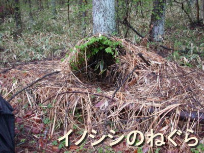 下ばかりを見ていると「あそこにリスがいる!」とか「あれはイノシシのねぐらですョ」などといわれ、キョロキョロしてしまいます。