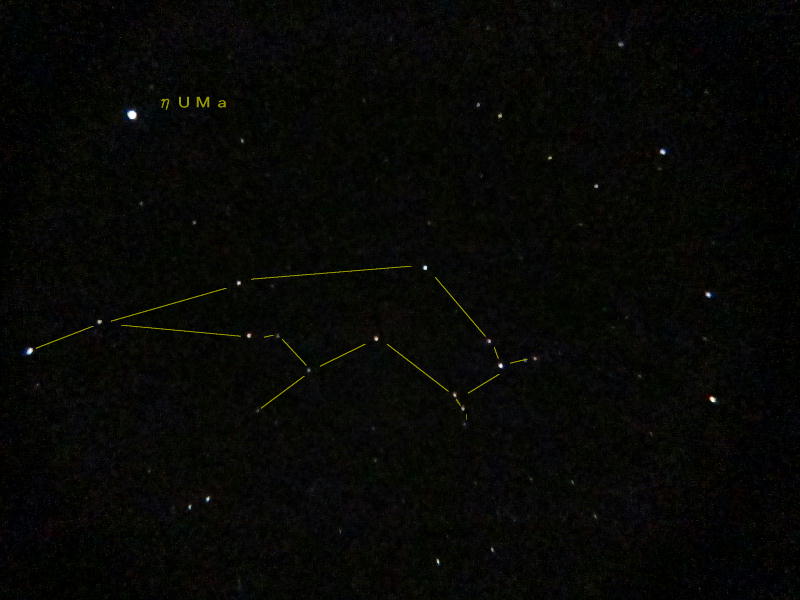 今日は北斗七星の柄のあたり、おおぐま座η(エータ)星(ミザール)付近にある