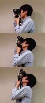 こうすると双眼鏡の重量のほとんどは脇で支えるため、双眼鏡に添えた手は