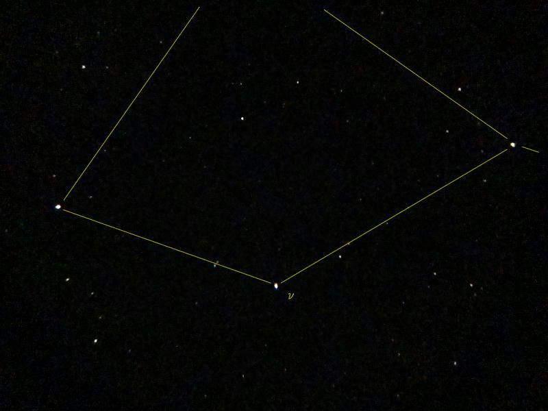 まず始めにりゅう座の頭の部分(不等辺四角形の部分)にあるν(ニュー)星です。