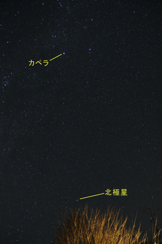 ぎょしゃ座が天頂にくるころ、ちょうどぎょしゃ座のカペラと北極星の間に