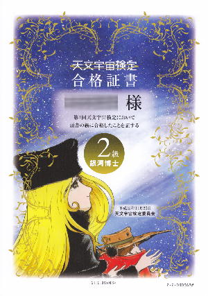 松本零士さんのイラスト(銀河鉄道999)の合格証で、めでたく「銀河博士」