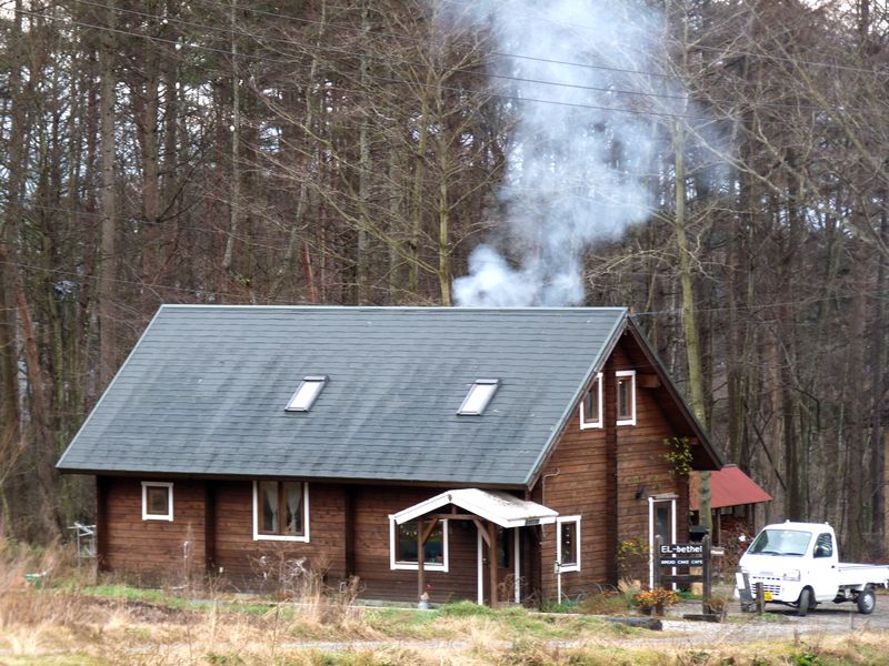 冬の風物詩、薪スト-ブの煙があちこちで立ちのぼるのを目にします。