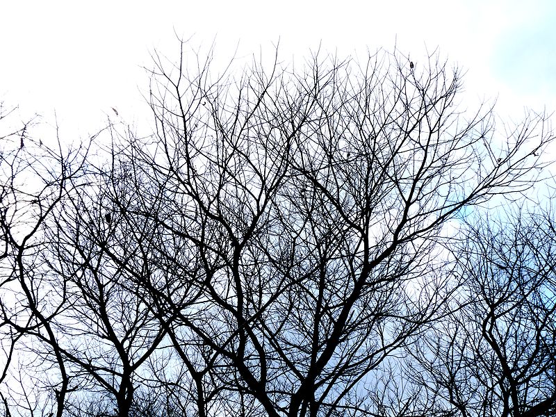 冬木立が明るい空をバックに網の目のように見えます。