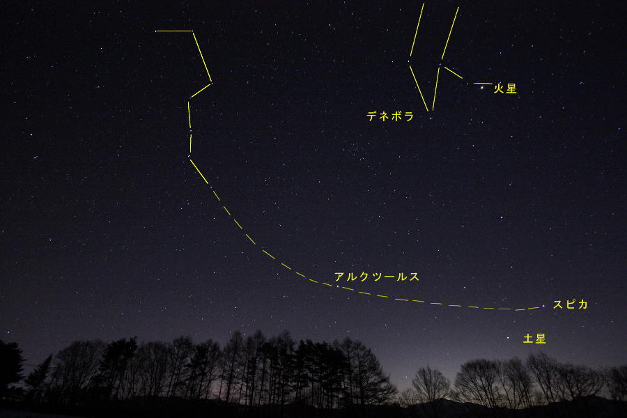 春の星空のランドマークといえば「春の大曲線」が一番です。