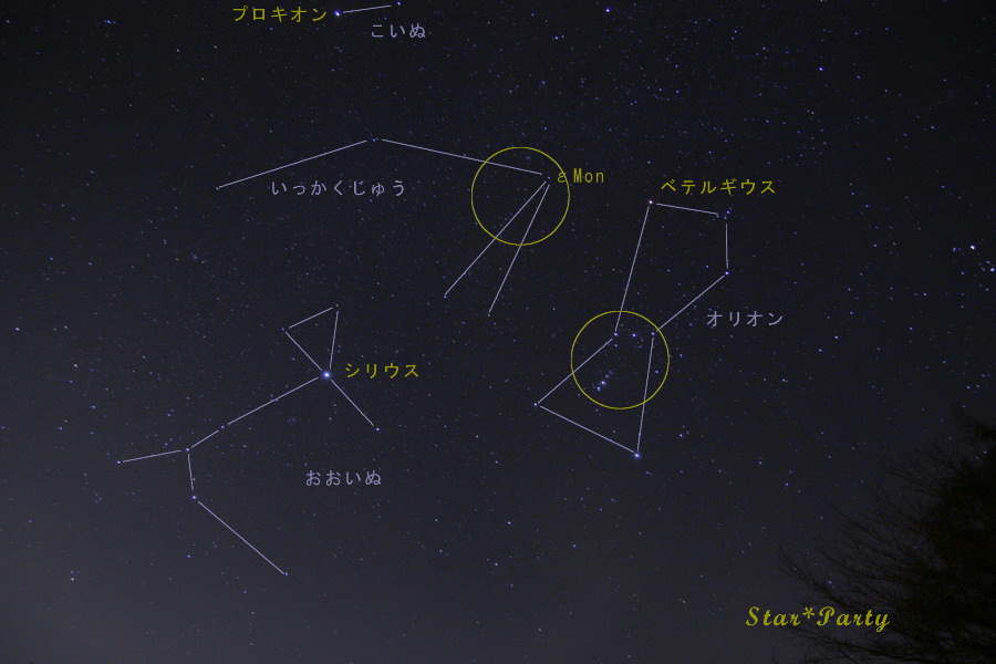 冬の大三角(シリウス-ベテルギウス-プロキオン)の中には「いっかくじゅう座」