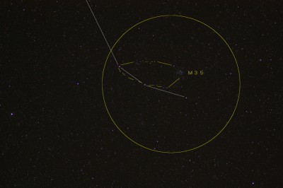上の写真で黄色線でつなげたようにM35とふたご座の足下の星2つを