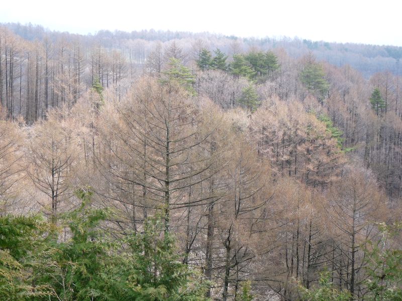 のですが、カラマツ林がほんのり、うっすらと緑色が混じってたような気がします。