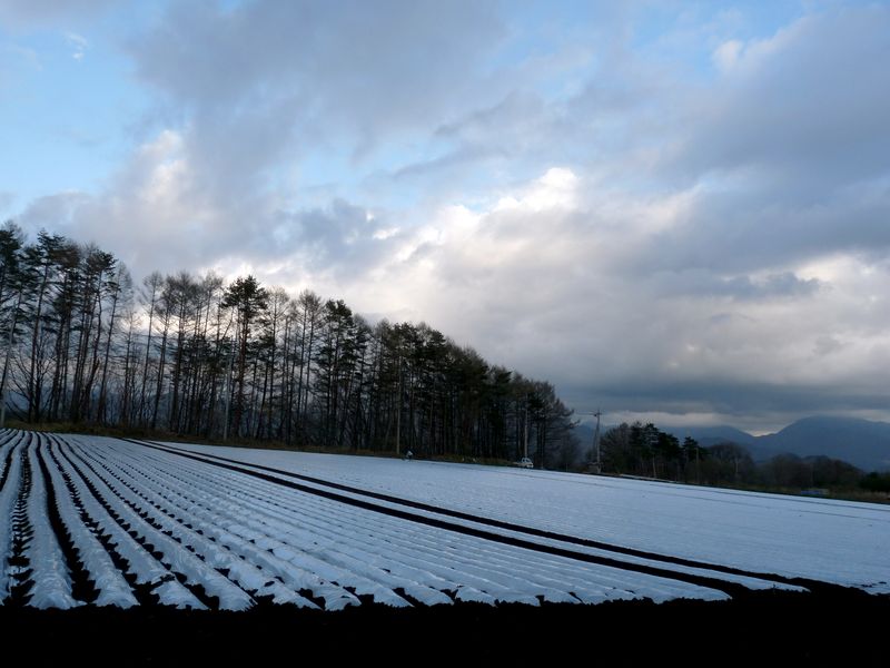 スタパ近くの畑ではマルチ(畑にかぶせるビニール)が張られ、農作業の準備が