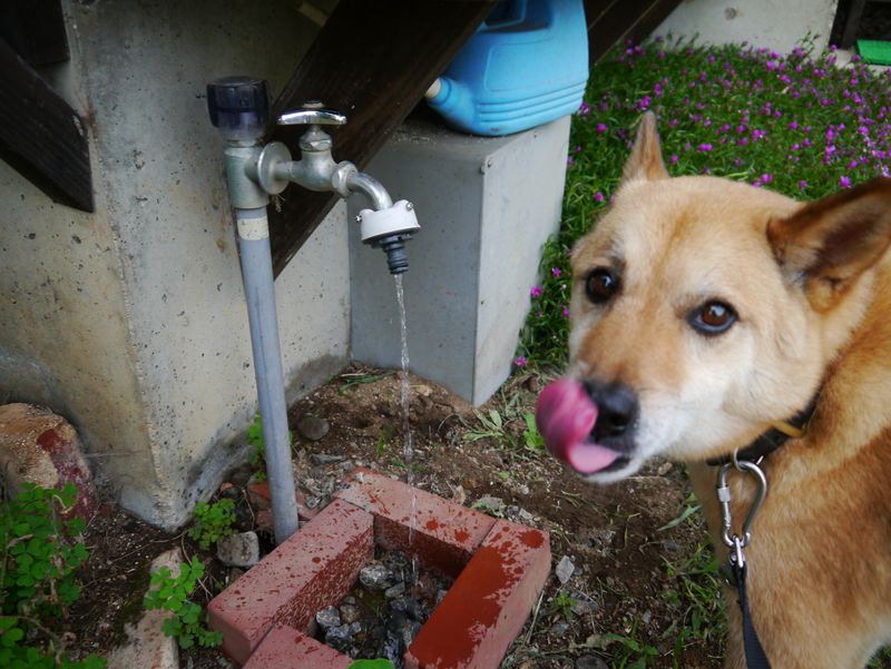 この時期マルスは散歩から帰ると水道の蛇口からガブガブ水を飲むのが