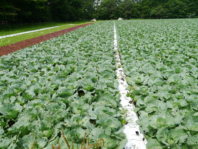 今年スタパ前の畑ではキャベツをメインに作っています。