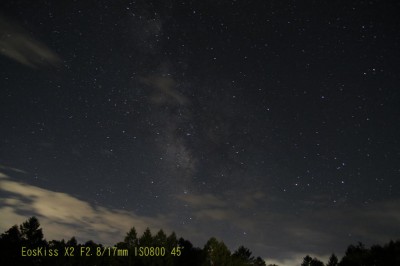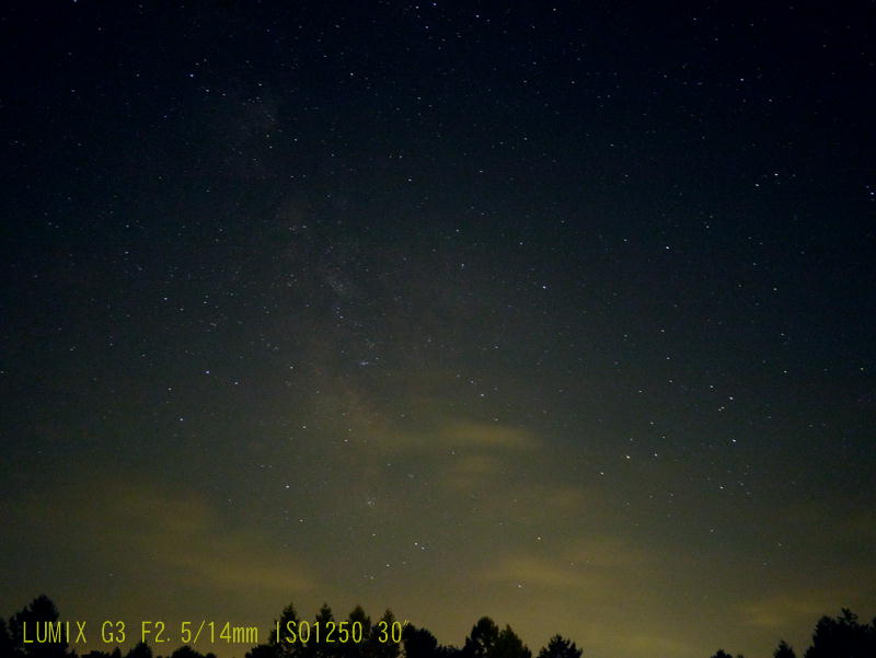 あまり条件の良い空ではありませんが天の川が少し写っています。