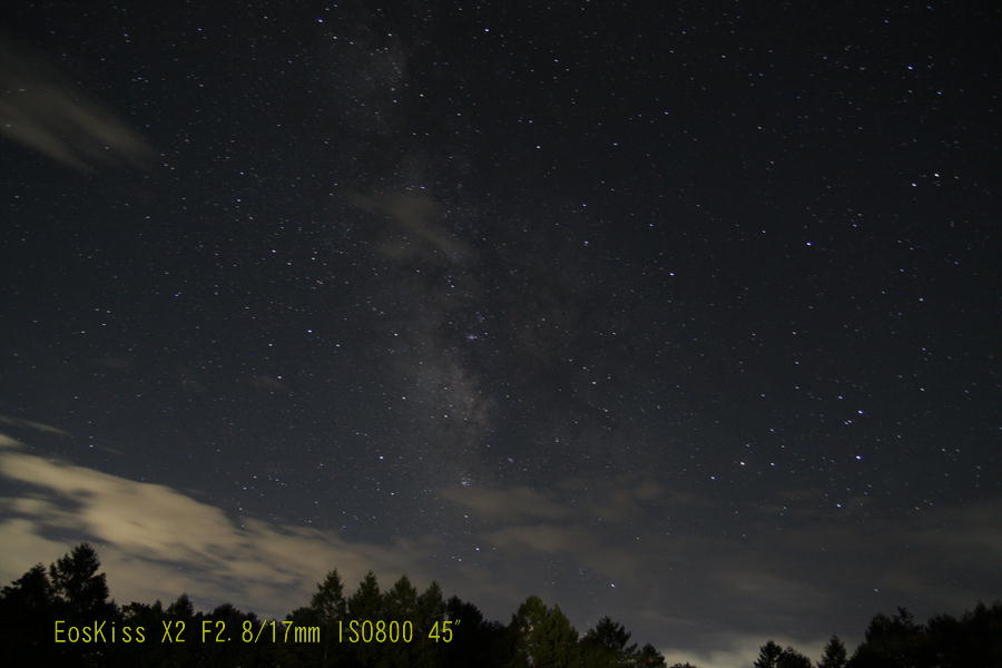 X2でF2.8/17mm(35mm判28mm相当)、ISO800で45秒露光です。