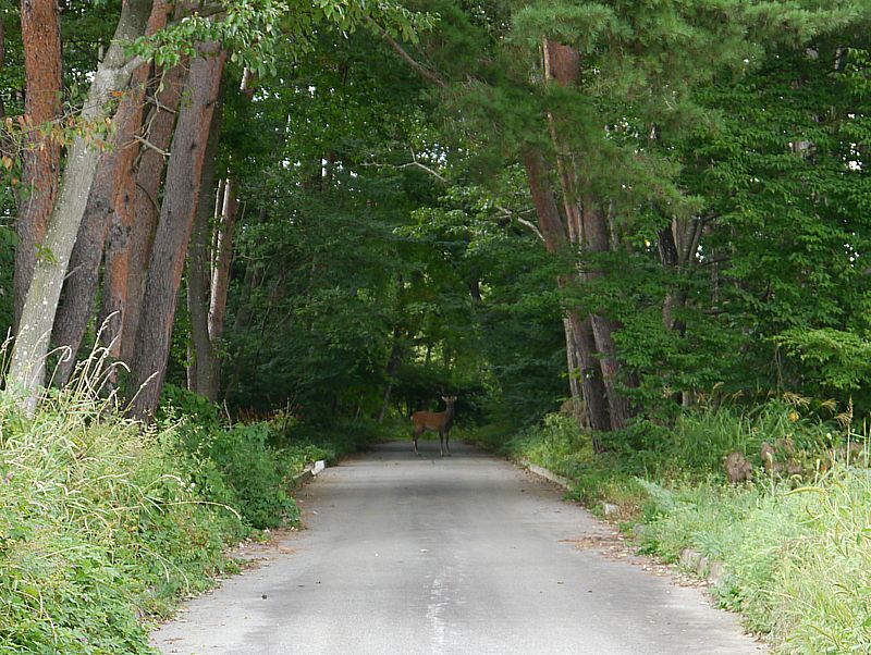 夏が終わり人が少なくなってきているからか平気でシカが道を歩いていたり