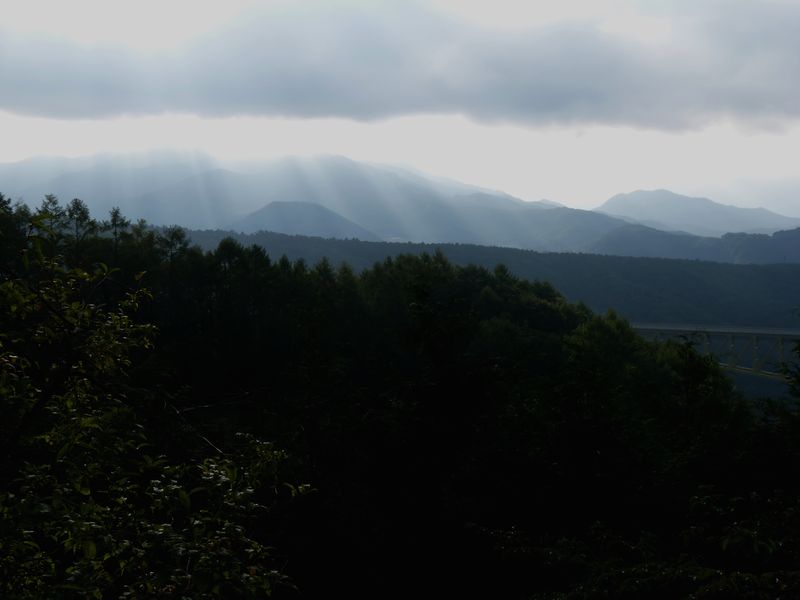 今朝は夕べからの雲が残り雲から射す日射し(天使の梯子)が荘厳な風景を