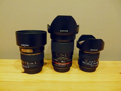 左から85mm/F1.4、35mm/F1.4、14mm/F2.8の3本です。